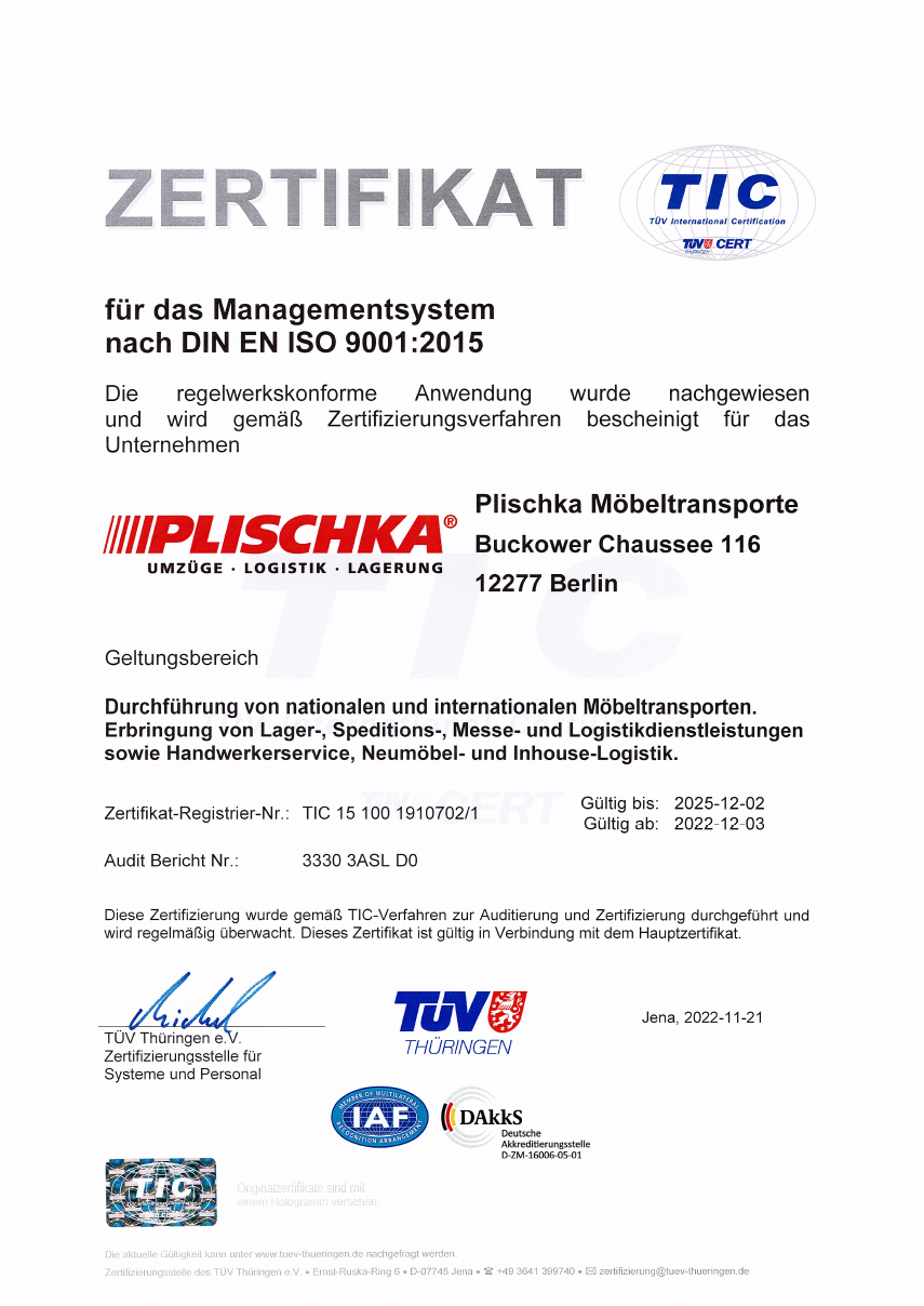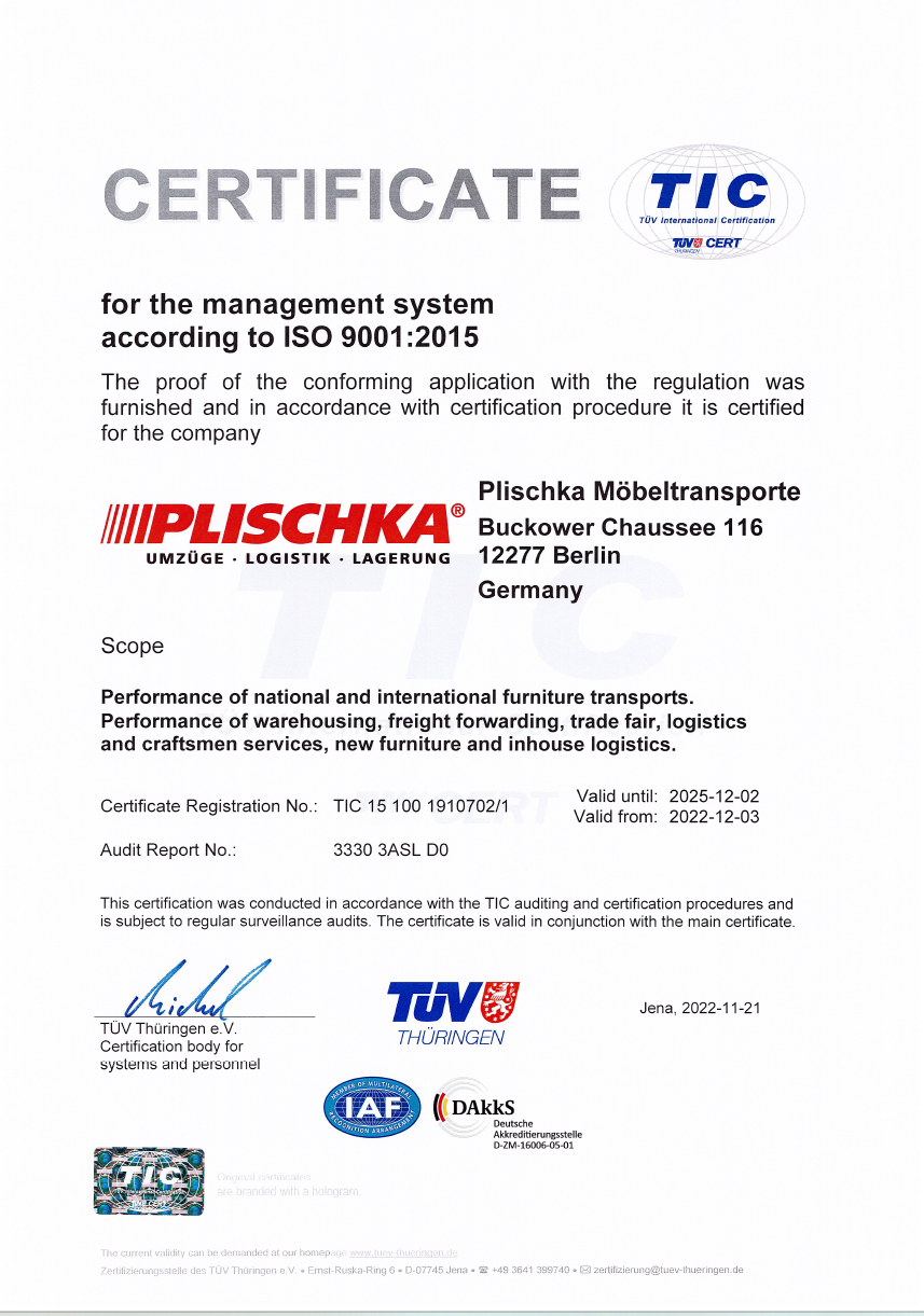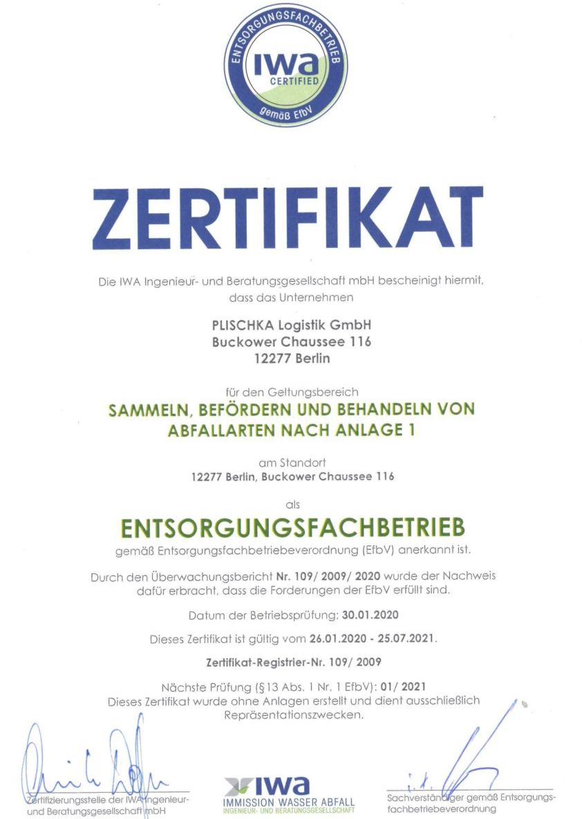 Quality can be proven: We have our services certified to consistently meet our high standards of service and efficiency.